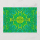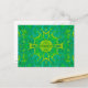 Carte postale avec motif arabesque lunatique plein de vibrations estivales. Fleurs stylisées, papillons, branches d'arbres et sphères solaires. Vintage / ethnique / bohème / boho / hippie / les années 70 / style newage. Couleurs jaune et vert, texture pastel dessinée à la main. Palette de couleurs : Vert mer, Jaune d'or, Aquamarine, Chartreuse. © Julia Khoroshikh www.juliakhoroshikh.art #mandala #floralmandala #summervibes #bohemian #bohemianarabesque #zazzlemade #postcards #greetingcards