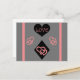Le coeur noir et rose forme le motif, avec une forme diamant (arlequin), ornent cette carte postale cool et grise ! Le mot "amour" apparaît dans le coeur noir, écrit en rose, et il y a des rayures roses sur les côtés de la carte postale ! Ce serait parfait pour la Saint-Valentin, les anniversaires, les mariages ou les anniversaires ! Formes de diamant et Coeurs "Amour" Motif © 2019 Regina Blankcitizen.