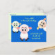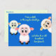 Petits agneaux, sur une carte postale bleue avec texte personnalisé. Utiliser comme invitation à l'école du dimanche, ou pour toute autre raison, car tout le texte peut être supprimé ou modifié. L'écriture sainte chrétienne au recto est tirée du livre des Proverbes et se lit comme suit : "Former un enfant dans le chemin qu'il doit suivre, et quand il sera vieux, il ne s'en écartera pas". La couleur est un bleu vif avec trois agneaux sur le devant. Un message personnel ou une invitation peut être ajouté au verso.