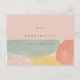 Carte postale avec le devis, Voir Possible partout. Une combinaison colorée de formes abstraites dans les tons rose, jaune, vert et rouge avec des éléments de fausse couleur or. Kimberly Brett.