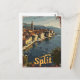Illustration vintage captivante de Split, ville historique sur la côte dalmate de Croatie. Le design met en valeur l'architecture romaine antique, les vues magnifiques sur le littoral et les rues animées qui définissent cette belle destination. Avec une esthétique nostalgique et rétro, l'oeuvre met en valeur le riche patrimoine de Split et le charme méditerranéen, invitant à découvrir son charme intemporel.