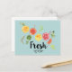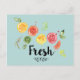 Une carte postale au design mignon avec agrumes croustillants - citrons, citrons et pamplemousses. La typographie branchée dit "Fresh" avec un joli trait de soulignement.