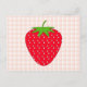 Joli design de fraise rouge vif, avec un dessus vert et un arrière - plan motif rose clair en vichy.