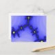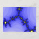 Le design de cette carte postale a été inspiré par mon amour des orages. Il y a trois fourches de foudre jaune vif venant du centre des couches de nuages bleus subtilement colorés.