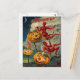 Fumer obscurcissant le ciel, les diables peuvent faire allusion à l'humanité. Cet Halloween vintage dépeint des démons volants, de la fumée, un valet souriant, une lanterne et un croissant de lune.