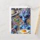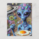 Carte Postale Funky Blue Alien Manger des oeufs frits