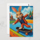 Carte Postale Funny Adorable Skateboard Brown Rabbit
