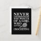 Si vous aimez le crochet ou connaissez quelqu'un qui le fait, alors cette citation amusante pour les amateurs de crochet est parfait pour vous ou quiconque aime au crochet ou même aime les citations au crochet amusant. Cette citation au crochet original et design graphique sont parfaits pour les débutants qui veulent étudier le crochet ou des artisans expérimentés cherchant à ajouter quelque chose unique à leur garde-robe Il est aussi possible d'être une idée cadeau original pour un cadeau d'anniversaire ou de Noël pour votre meilleur ami, parent, ou petite amie dont la passion est crochet, et cette grande citation les aidera à se souvenir pourquoi ils l'aiment tant.