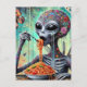 Carte Postale Funny Funky Alien Manger Spaghetti Collage