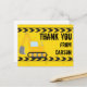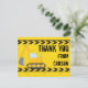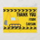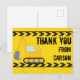 Carte postale de remerciement de véhicule de construction personnalisée cool pour un enfant qui aime les véhicules de construction jaunes en noir et jaune. Design d'excavatrice amusant pour un petit garçon qui aime les voitures et les camions. Personnalisez avec le nom de votre enfant sous le ruban de signalisation noir et jaune.