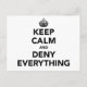 Restez calme et niez tout. Une bonne stratégie - ça marche pour moi ! Basé sur le populaire Keep Calm et Carry sur mème.