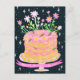 Carte Postale Gâteau Fun Happy Birthday avec Gouache de fleurs r