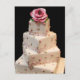 Elégante et romantique, gâteau mariage traditionnel à quatre étages en forme de carré, orné de minuscules roses et surmonté d'une grande rose rose. Photo de Sana Lee