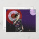 Geisha, Kimono, Rouge, Blanc, Noir, maquillage, Obi, Lune, Purple, Parasol, Pétales de fleurs de cerisier, rêve, imaginaire, cheveux, maquillage
