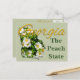 Bien qu'on l'appelle parfois "l'Empire State of the South", le surnom officiel de la Géorgie est "The Peach State" (l'Etat de la Pêche). Pas étonnant. La Géorgie est le premier producteur d'arachides, de pacanes et de pêches. Le Rose Cherokee, charmant et parfumé, a une triste histoire qui lui est associée. Un événement tragique, en 1838, au cours duquel des milliers de Cherokee furent chassés de Géorgie et d'autres terres à l'est du fleuve Mississippi. Le chemin emprunté par les Amérindiens a été appelé le "sentier des larmes" à cause des larmes versées par les Cherokees sur le voyage et du nombre d'Amérindiens morts en chemin. Les chefs, disent-ils, ont prié pour qu'un signe donne espoir à leurs femmes. On dit que là où une larme tombait, un Rose cherokee fleurissait. Les fleurs continuent à fleurir le long du chemin aujourd'hui. La Géorgie devint le 4ème Etat en 1788. Comme le dit l'un de nos "anciens", il est surprenant que la chanson d'Etat "Georgia On My Mind" ait été adoptée en 1979 et que le drapeau officiel de l'Etat ne date que de 2003. Malgré sa riche histoire, bonne et mauvaise, la Géorgie abrite l'une des villes les plus contemporaines du pays : Atlanta. Atlanta est aussi le berceau de Coca-Cola. Ce design enchanteur rend hommage à cet état magnifique. Le contour de l'état est rempli de belles fleurs blanches du Rose cherokee. Ceci est superposé avec l'or jaune "Géorgie". Ces cartes postales délicieuses peuvent être achetées avant vos vacances afin que vous ne perdiez pas de temps à les chercher et que vous puissiez vous concentrer sur toute la beauté autour de vous. Paire avec les timbres-poste correspondants pour une présentation encore plus impressionnante.