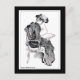 Dessin vintage de Charles Dana Gibson d'une jeune femme en robe longue et casquette lisant un livre.