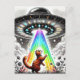 Un chaton gingembre mignon accueille un OVNI dans un pré fleur sauvage imaginaire science art généré par l'IA