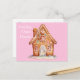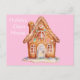 Une scène de Noël traditionnelle d'une charmante maison en pain d'épices contre un arrière - plan rose gai. Traditionnel avec une touche moderne à partager dans les festivités de la saison. Approprié pour tous les âges et les sexes.