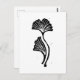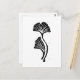 Impression minimaliste en lino d'une feuille de gingko verticale en noir et blanc.