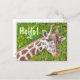 Portrait photographie d'une girafe avec le texte Bonjour.