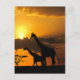 Une girafe mère et son veau sont en silhouette face au soleil couchant derrière eux. L'art informatique par l'artiste primée Kathie Miller.