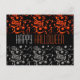 Cette carte postale personnalisable d'Halloween présente des rayures orange et noir et blanc de galets de glam contre un arrière - plan noir.