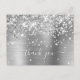 La parties scintillant argent brillant faux filé se met en surbrillance sur le bord gauche sur une feuille de métal brossé gris argenté faux. Le texte de remerciement girly moderne dispose d'une police calligraphie blanche élégante avec queues ou swashes décoratifs. La parties scintillant et la feuille sont des graphiques arts numériques qui s'impriment comme une photo sur votre carte postale.