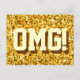 Carte postale au design moderne, avec des étoiles éparpillées sur un arrière - plan motif stylisé "à paillettes" et "OMG !" dans les tons jaune et marron. Peut être utilisé comme arrière - plan pour vos propres textes, images et idées. Veuillez noter qu'il s'agit d'une image d'art numérique imprimée, elle ne brille pas ou ne contient pas de parties scintillant ou de paillettes réelles.