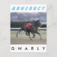 Équestre Runaway Gnarly, courant à travers l'étirement à Aqueduct avec ses reines pendent et flop à travers la brise hivernale. Gnarly a perdu son jockey à mi-chemin de l'étirement.