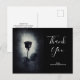 Une carte de remerciement de soirée sombre et mystérieuse avec une illustration cool d'une rose noire de style goth / emo avec du sang rouge qui coule sur ses pétales. Un fond grunge noir avec une couleur blanc cassé au centre mettant en valeur cette rose sombre et macabre.