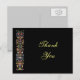 Une carte postale avec une belle oeuvre d'art de manuscrit enluminé gothique de fleurs et de feuilles enroulées sur fond noir. Le recto indique Merci, mais vous pouvez modifier le texte et choisir le style de lettrage et ajouter un message au verso.