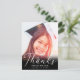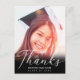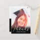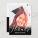 Merci à votre famille et à vos amis pour leurs cadeaux de remise de diplômes et leurs voeux avec cette élégante carte postale personnalisée. Ce modèle design chic présente votre photo avec un habillage noir en bas et un script blanc à la main moderne qui dit "Merci" et votre nom, et classe/année ci-dessous. Le verso de la carte contient une note de remerciement et une signature pour que vous personnalisiez un arrière - plan vert. Félicitations pour votre diplôme ! Conçu par l'artiste Susan Coffey.
