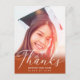 Thank your family and friends for their graduation toxits and well wishes with this elegant custom photo postcard. This chic design template feyour photo with a burnt orange overlay at the bottom and a modern lettered white script reads "Thanks" and your name, and class/year below. The back of the card has a thank you note and signature for your to personalize in green background. Congratulations on your graduation ! Designed by artist Susan Coffey.