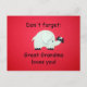 Un mignon éléphant avec un ruban attaché autour du tronc, et un message : "N'oubliez pas : Grand-mère vous aime !" (Les éléphants n'oublient jamais). Faites savoir à votre grand-fils ou grande-petite-fille que vous les aimez toute l'année !