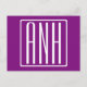 Carte Postale Gras moderne 3 initiales Monogramme | Blanc et pou