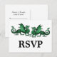 Parfait pour un mariage sophistiqué de jeu de table d'imaginaire à thème est cette Elegant Dragons Wedding RSVP Postcard avec une paire de dragons verts vibramment colorés. Facile à customiser, il suffit d'ajouter les détails de votre mariage dans les champs de texte fournis. Cliquez sur "Customiser" pour trouver d'autres options de personnalisation.