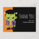 Carte postale Merci avec une image d'Halloween amusante avec un monstre Frankenstein vert.