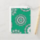 Une carte postale avec mon Motif Mandalas 1, imprimée sur un arrière - plan vert. Cette version est centrée sur mon Design 1 Mandala.