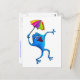 Cette charmante grenouille bleu vif chante pour la joie sous la pluie estivale tout en dansant avec un parapluie coloré.
