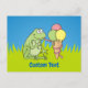 Grenouille souriante vole un cône de glace avec sa langue. Texte personnalisé.