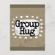 "Group Hug" est un design de texte mignon en beige avec du texte en noir, avec une forme d'accent blanc et des points blancs blancs et blancs qui l'entourent.