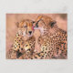 Carte d'animal montrant un couple de guépards en Afrique du Sud. Le guépard (Acinonyx jubatus) est un grand félin habitant la majeure partie de l'Afrique et certaines parties de l'Iran. Le guépard peut courir plus vite que n'importe quel autre animal terrestre, jusqu'à 112 à 120 km/h (70 à 75 mph). en courtes rafales sur des distances allant jusqu'à 500 m (1 600 pieds), et a la capacité d'accélérer de 0 à 100 km/h (62 mph) en trois secondes. Sa principale stratégie de chasse consiste à poursuivre des proies rapides telles que diverses espèces d'antilopes et de lièvres. Presque chaque facette de l'anatomie du guépard a évolué pour maximiser son succès dans la poursuite, résultat d'une course aux armements évolutive avec ses proies. En raison de cette