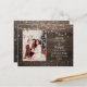 Cette carte postale a toute la qualité de conception d'une carte photo traditionnelle, avec la possibilité d'ajouter un message manuscrit au dos. Ce design présente un magnifique fond en bois rustique avec des guirlandes lumineuses et un subtil overlay de flocons de neige pour lui donner une atmosphère festive. Sur le côté gauche se trouve votre image avec une délicate bordure dorée. Sur la droite, une élégante typographie en forme de sapin de Noël qui dit "Joyeux Noël et Bonne Année avec amour de" puis votre nom de famille et la date.