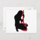 Silhouette d'une fille avec une guitare. La fille est en noir et la guitare en rouge.