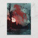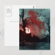 Cheval fantomatique rouge sur une pleine lune accompagnée de chauves-souris avec un chat noir accroché autour de la carte postale éffrayante d'Halloween. Peut être utilisé pour des invitations ou juste un bonjour fantomatique