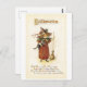 Carte Postale Halloween à l'ancienne, sorcière fille avec chat n