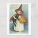 Carte Postale Halloween à l'ancienne, sorcière fille avec chat n