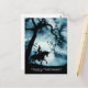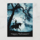 Une belle carte postale avec une sorcière chevauchant une licorne avec un hibou et un chat noir. Super mignon imaginaire Bonne carte postale Halloween !