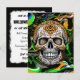 Invitation personnalisée de la fête d'Halloween. Crâne à sucre noir, orange et bleu Halloween invitations par carte postale.