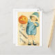 Carte Postale Halloween démodée, Fille tenant un Citrouille